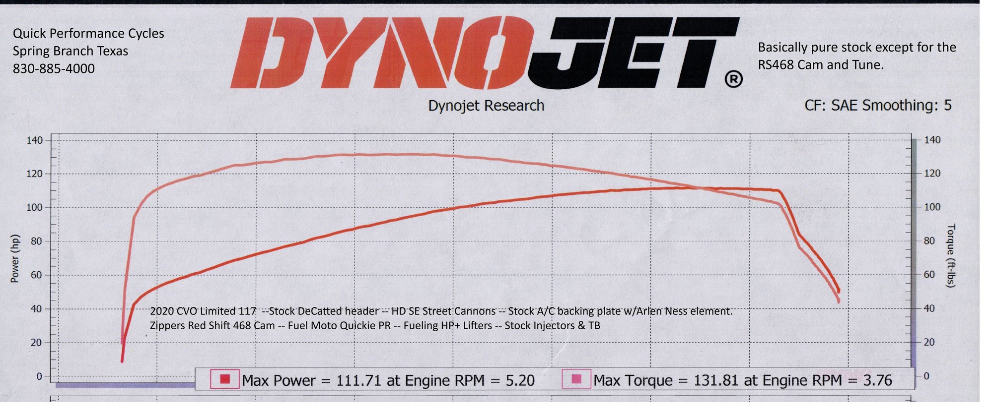 2020 117, RS468 cam, stock a/c and stock decatted header, street cannons. 131 to and 111 hp.