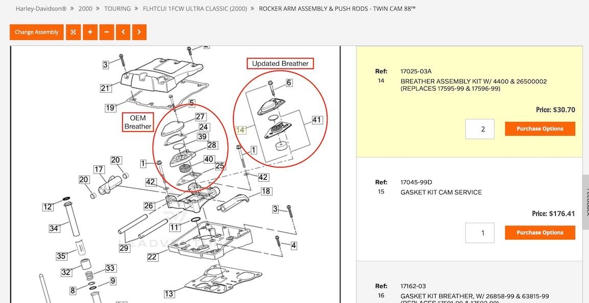 OP, your OEM breathers were updated in 2003 to the stamped steel #17045-99D breather assemblies. The HD list price is $30.70ea. Most likely cheaper than any aftermarket breathers... You could rebuild your OEM breathers with the right gaskets and umbrella valves, but the updated, stamped steel breathers are slightly lower profile, and easier to install in-frame.
