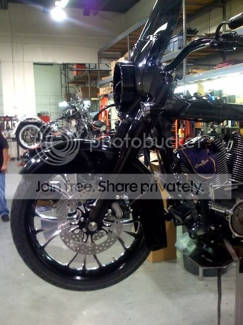I blacked out the front end of my road king custom....headlight,forks,lowers crash bars.Bought passing/running lamps with the adapter to mount the front turns,I also have a dark windshield.I'm going to powder coat the passing/running lights.My question is would it hurt the brackets that attach thewindshield to the forks,would the heat warp it or make it so it would not line up again.not sure I need to powder coat it or not but the spot it attaches to will also be black so thought it might look better blacked out to....what do you guys think???