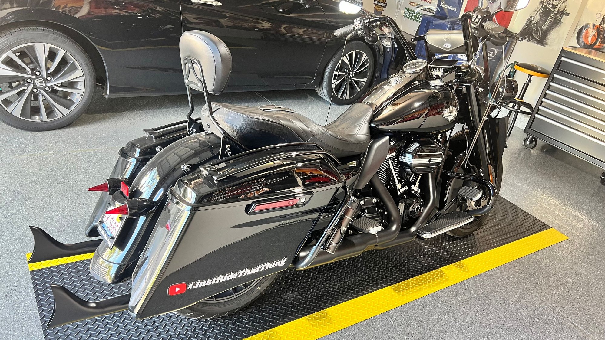 Mine have the logo under the trans where you check the fluid and and the clutch cable goes in, have him send a picture. It’s hard to see it is etched in. I know its not a road king but i have to believe they would have a logo on them