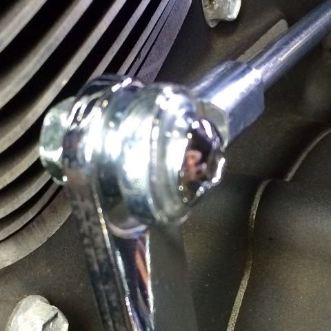 The rear extends through the backside of the bracket about 3/16" which leave me enough there to insert a chrome 5/16"x1/4" thick chrome spacer which will really make the entire alignment much better as you can see in the pic above. More angle than I expected. It's fine as is but I think spacing out the rear connection will be better.