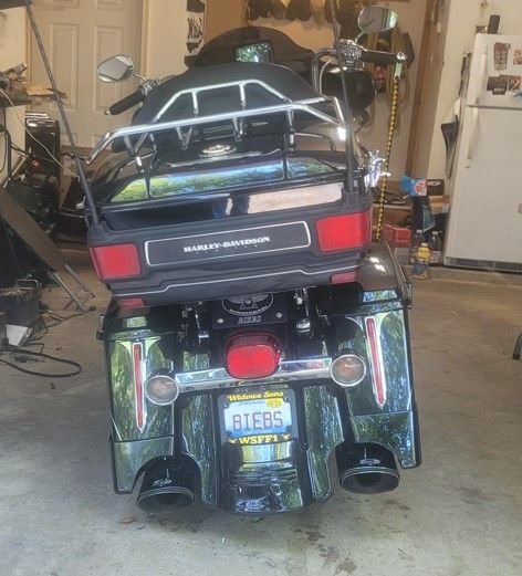 I know this is an old post, but found it while trying to figure out bag and fender extensions with monster ovals. I tried an experiment and it worked, I ordered standard pre painted bag extensions from Amazon (very cheap) as well as a pre painted fender extension (also very cheap). I then used a dremel and a drill mounted round sander to cut out the additional size needed for the monster ovals. I used a piece of poster board to mock a template and then used a silver sharpie to trace what needed cut on the extensions, from there I cut and trimmed with the dremel and then sanded it with the round sander on the drill. After the extensions were cut and mocked up on the bike I used Harley Vivid black touch up paint to fill in any scrapes I made with the dremel (mostly the first bag extension, when I did the second I was much better and had a lot less small flaws to deal with) and after that used black polish and buffed it out, it came out great. I did relocate the license plate to above the extension to cover the holes left after removing the fender bumper, light, and trim. I did this on a 2011 Ultra Limited and did not use any fancy license plate relocation kit, I just bent the license plate using a propane tank and drilled 2 holes in the fender (yeah that was nerve wreaking) and then was able to flex a plastic license plate frame I had and it worked just fine.
