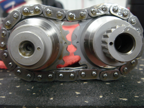 The pic shows the "internal chain". Those marks were lined up......until, I put the "rear cam - crank sprokets and chain on. When the "exterior "crank-rear cam" marks line up......the dots on the cams themselves do not.