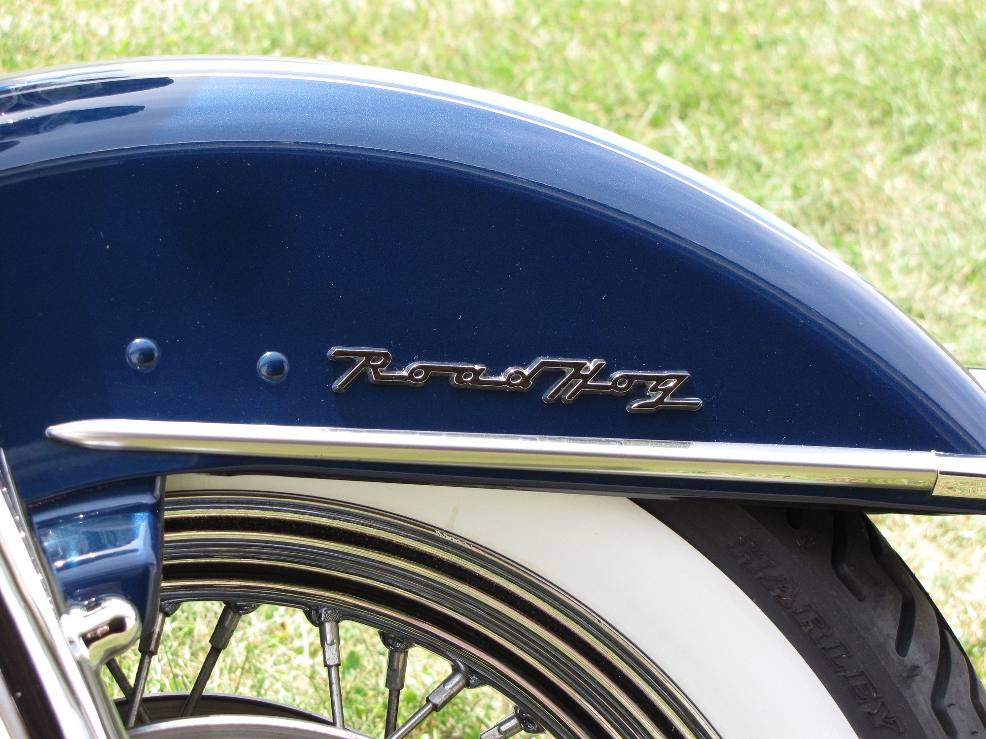 My 09 Road King Classic. The bike came with all four options: two tone paint (Antique Ivory & Turquoise), anti lock brakes, security system & spoked profile wheels. In 2009 the profile wheels used tubes. Starting in 2012 Profile wheels are tubeless. Road King Classics use 16'' front & rear wheels. I searched and found a set of 16'' 2012 tubeless profile "NOS take offs". I also had them relaced with polished stainless steel spokes.