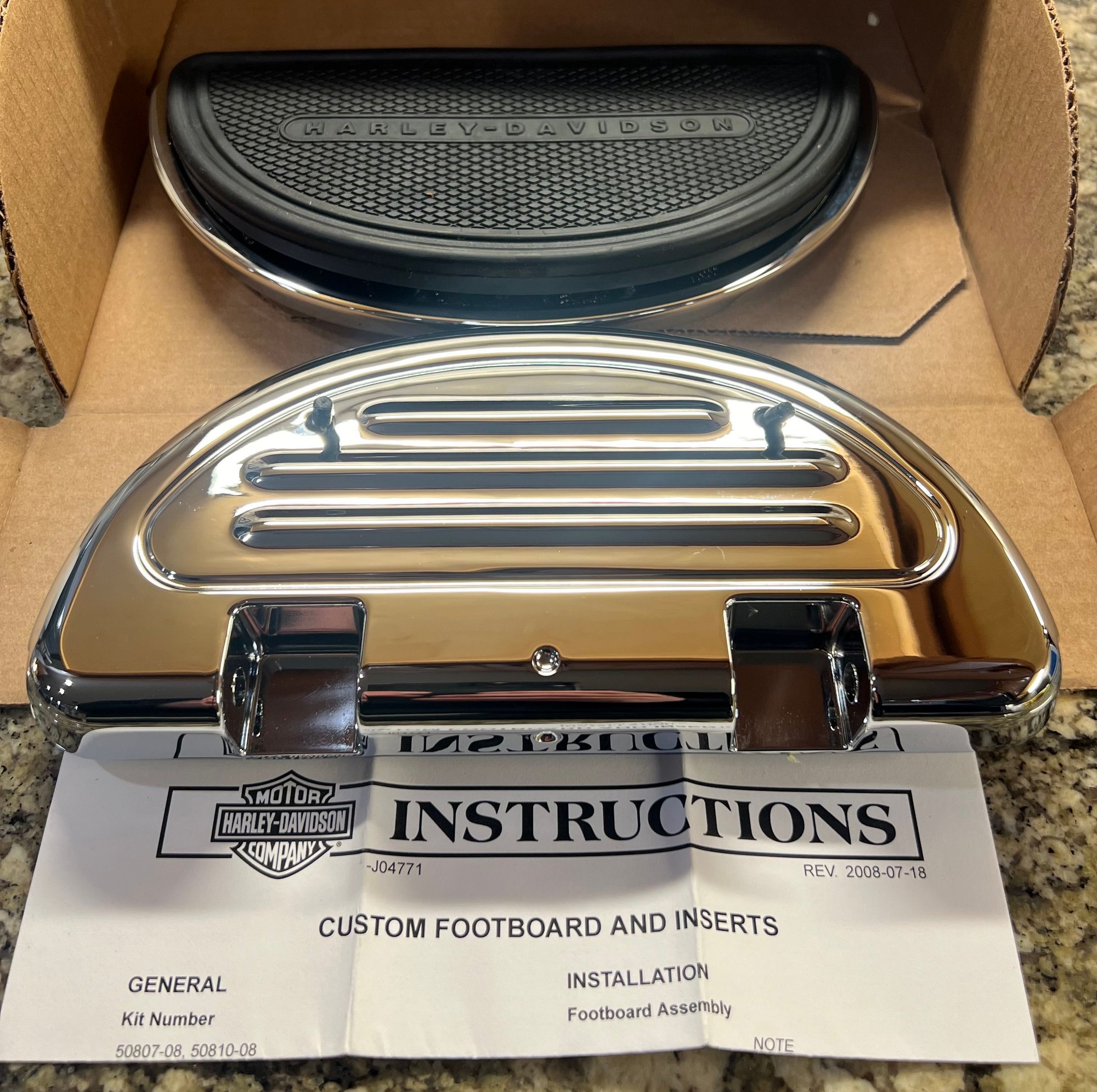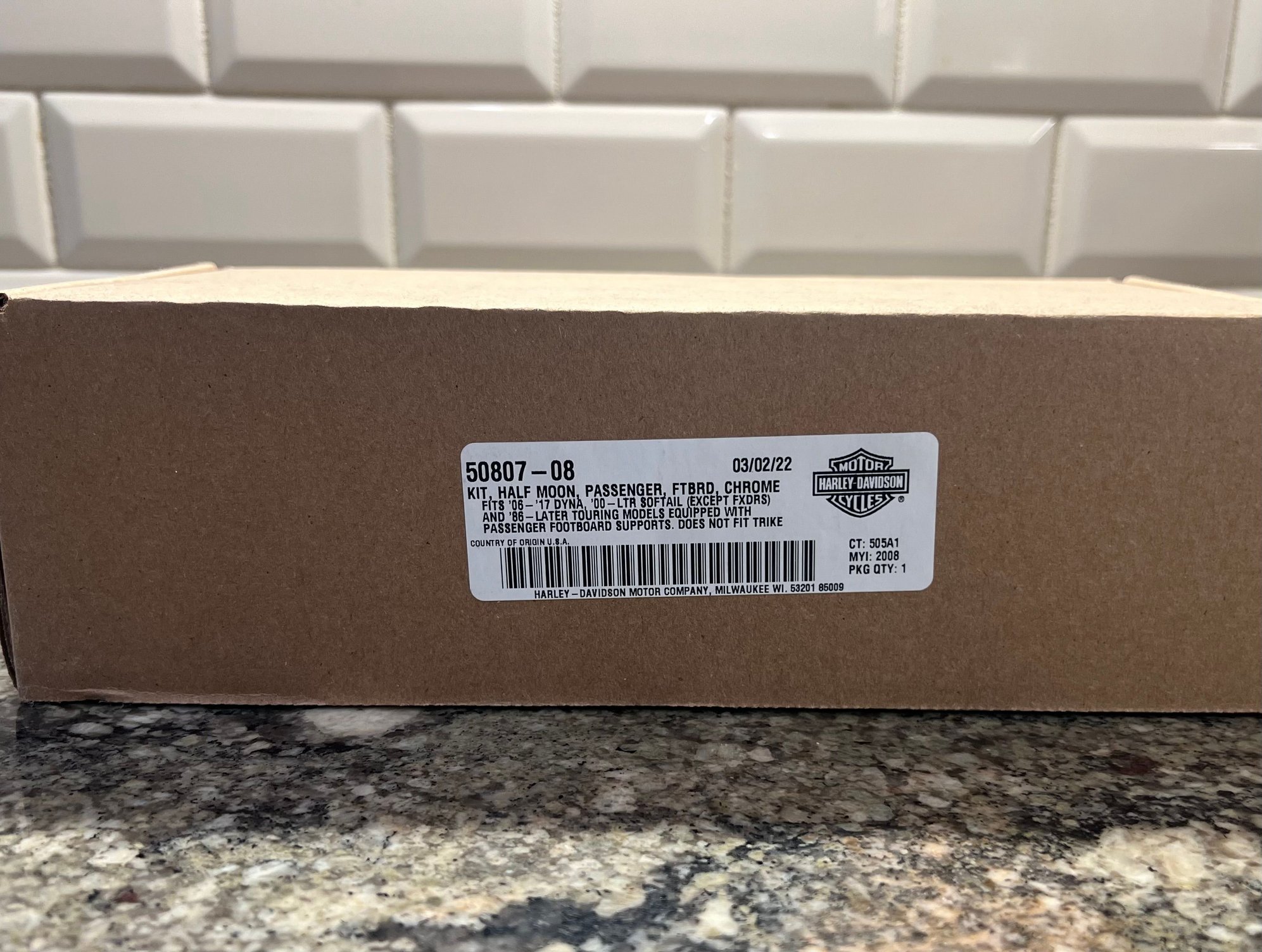 HD Part # 50807-08 fits '86-later All Touring, '00-later Softail and '06-later Dyna models equipped with passenger footboard supports. Does not fit Trike models.”