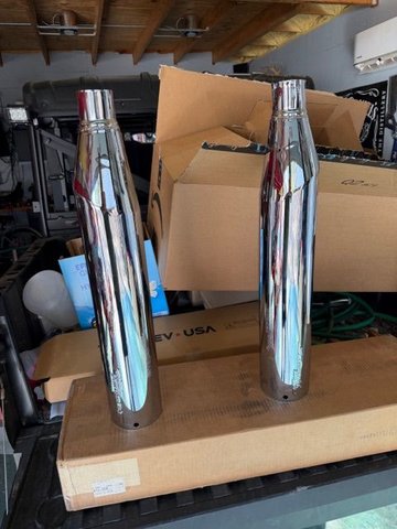Set of Screaming Eagle stage 4 mufflers. These have the built in cats Unknown mileage, no clamps or end caps. Great shape but previous owner made cuts over the let muffler where it slides over exhaust tube, should be hidden by the clamp.