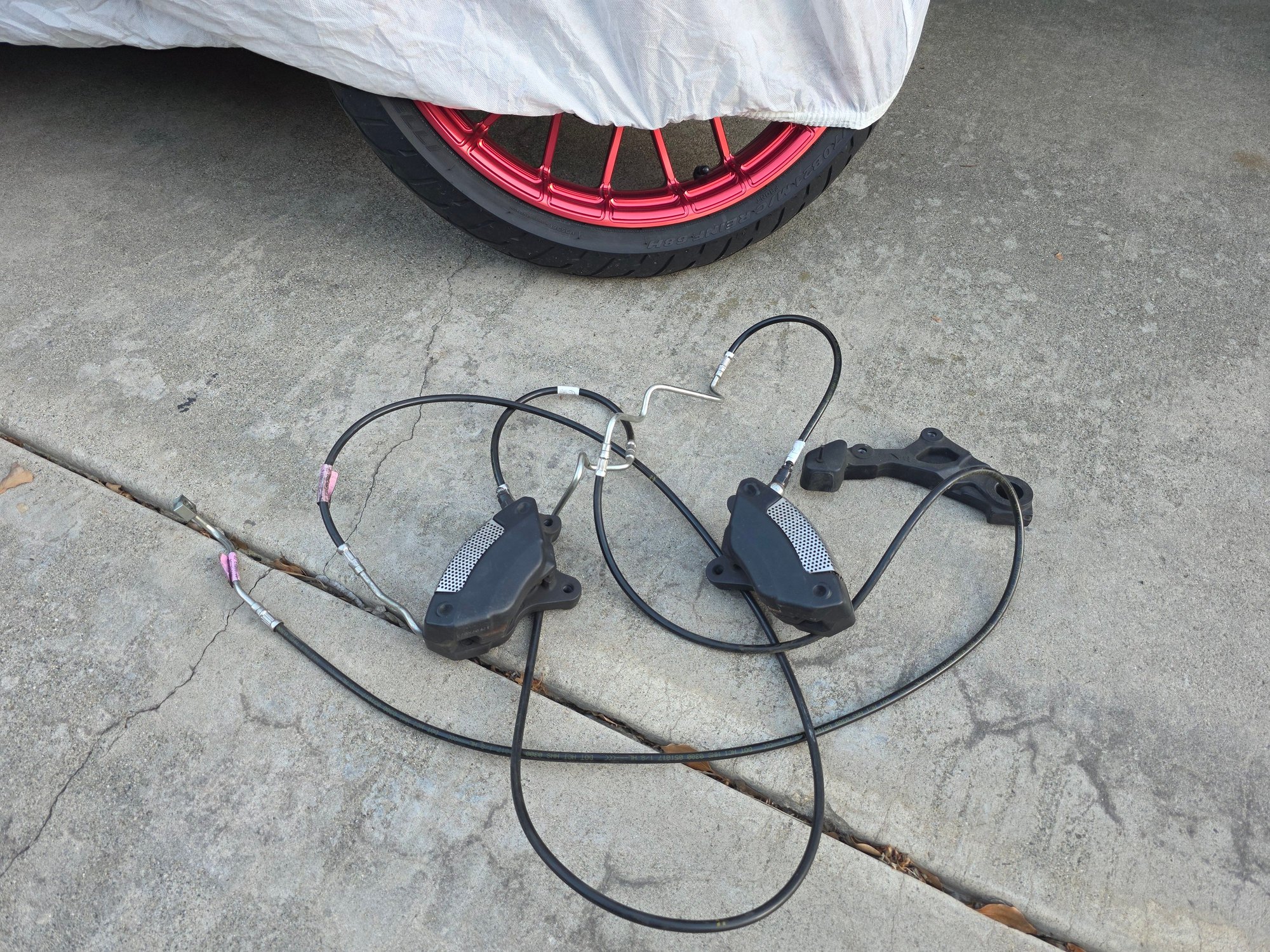 --Stock Brembo black wrinkle finish calipers w/braided stainless steel cables w/ protective coating. Off my 18 RGS w/Reflex Linked brake system. Great shape. I have the third (rear) caliper in storage, to go as a front/rear set,