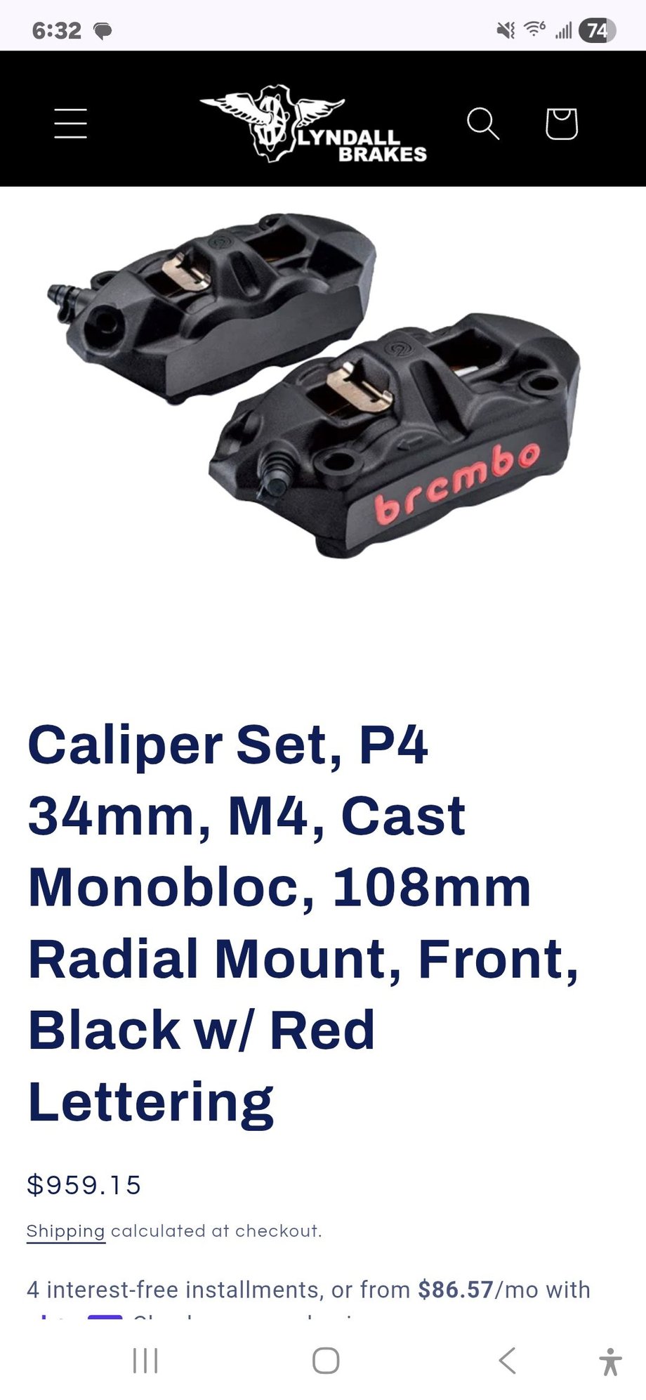 --Brembo front calipers w/brackets bought from ( Lyndallbrakes.com ) Jet black w/red lettering perfect condition. Were not used long, bought Arlen Ness lower legs that wouldn't match, pads look almost new still. If wheel doesn't sell at price locally, I will sell w/Brembo's as a package, price tbd.