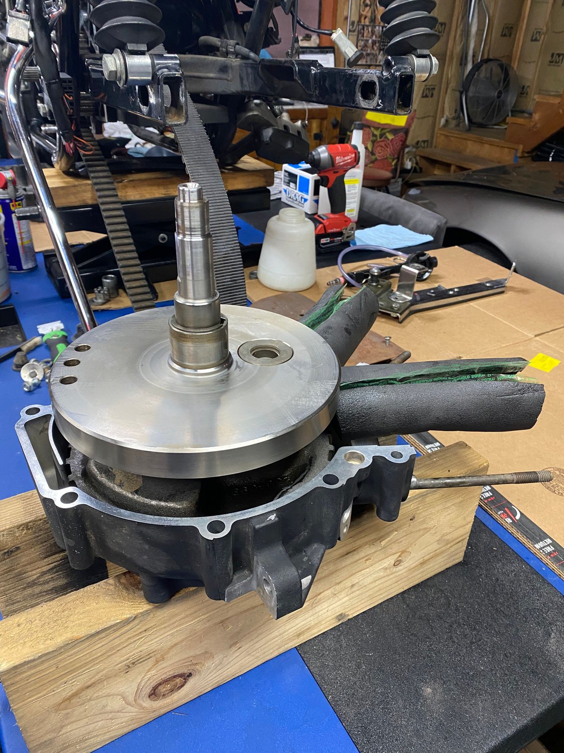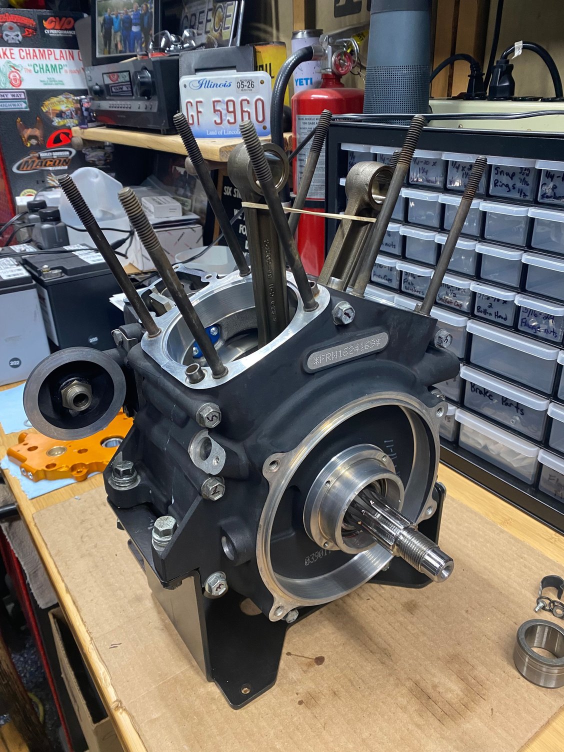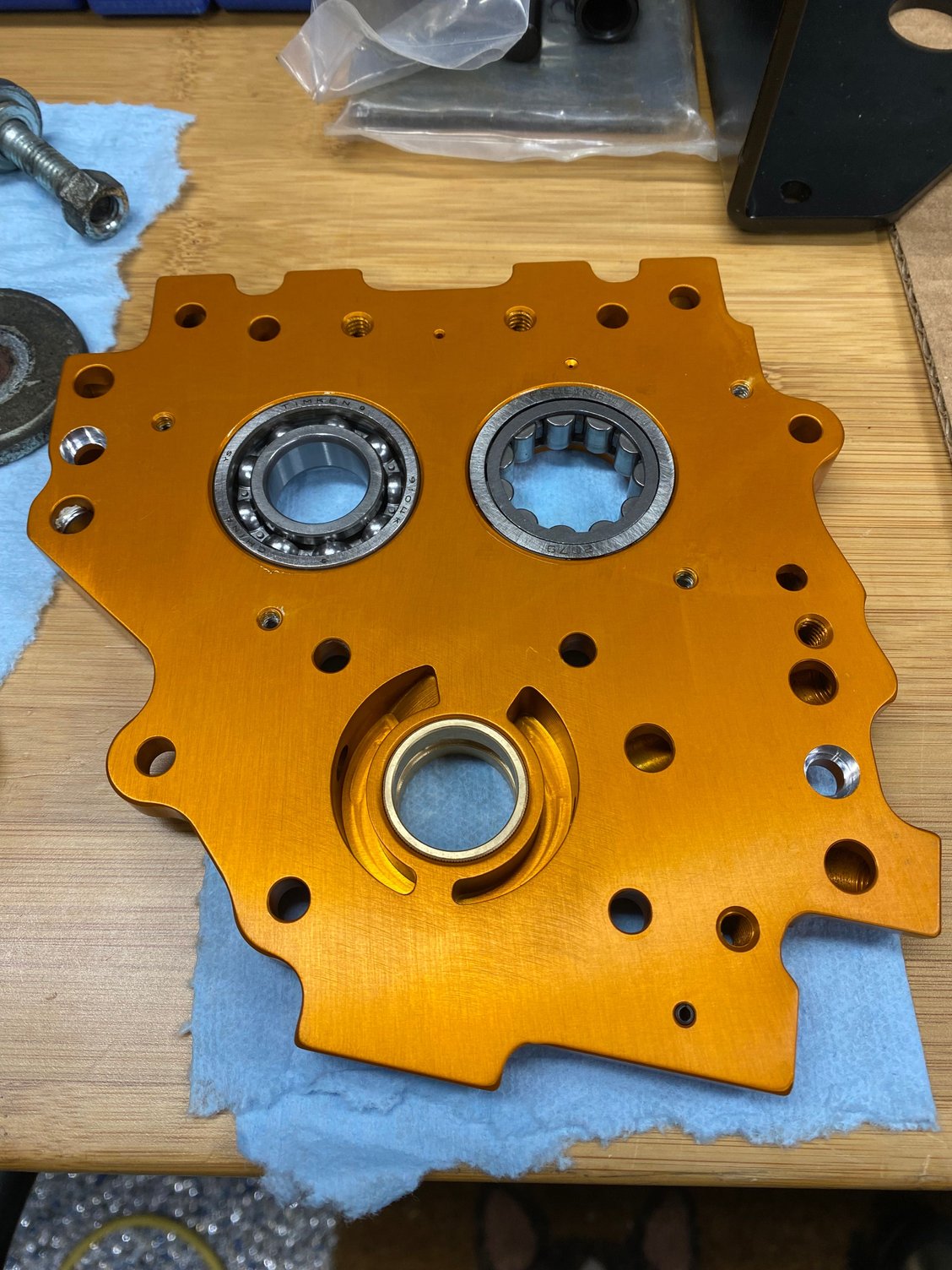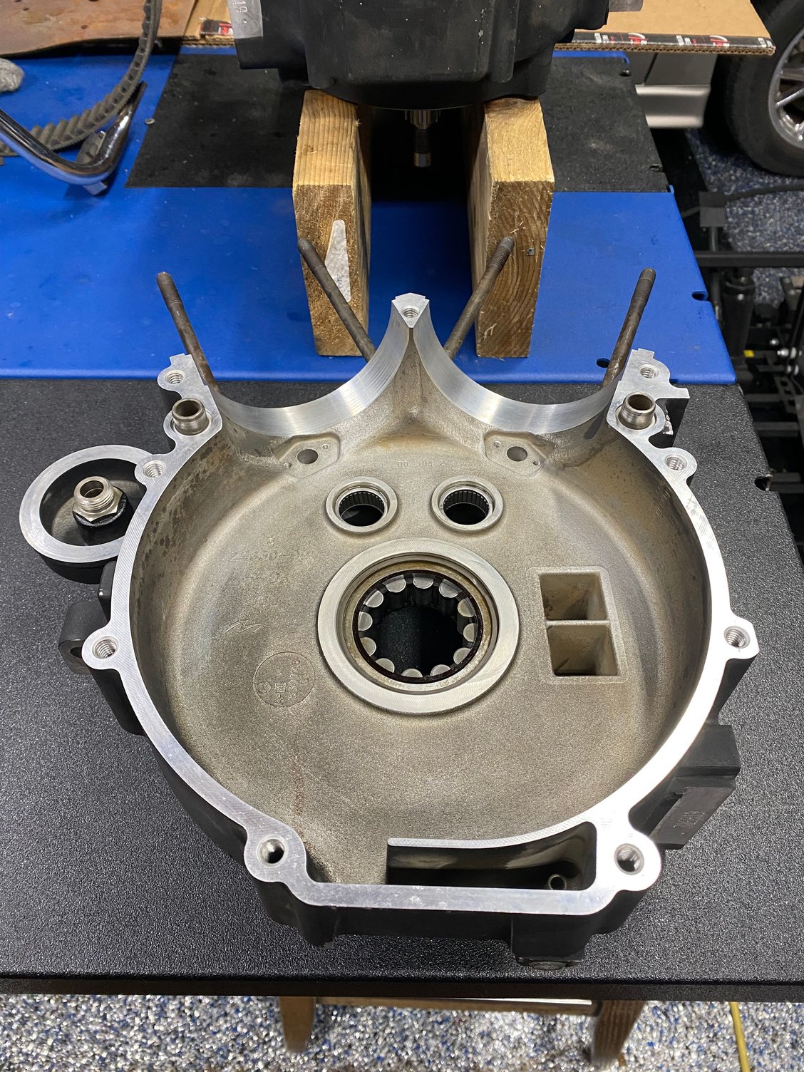 Hey everyone, been a couple of weeks now so wanted to give an update: I split the cases, pressed the flywheel out, and cleaned everything really good. Everything looks good other than normal wear. Installed the flywheel yesterday and did the cam bearings as well. Had .002 endplay with the flywheel. Going to be putting the halves back together today after I clean AGAIN the piston oilers and install. Also installed the new bearings in the new cam plate as well. Here are some photos: