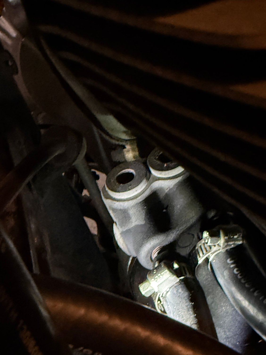 2) If I am understanding correctly, there is a thermostat in the oil cooler adaptor assembly, under the plugs at top, as seen in photo below. These 103"s run hot AF on the best of days, and I live in Southcentral Texas. Temps here rarely drop into the 40s, and frequently hit triple digits. Has anyone removed the thermostat from that adaptor so the cooler functions all the time? Can anyone think of a reason not to remove the thermostat?