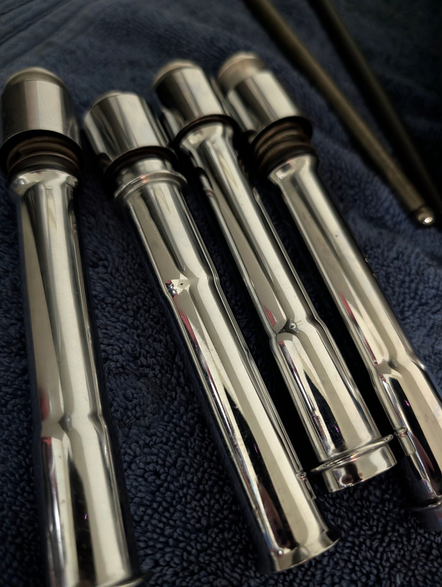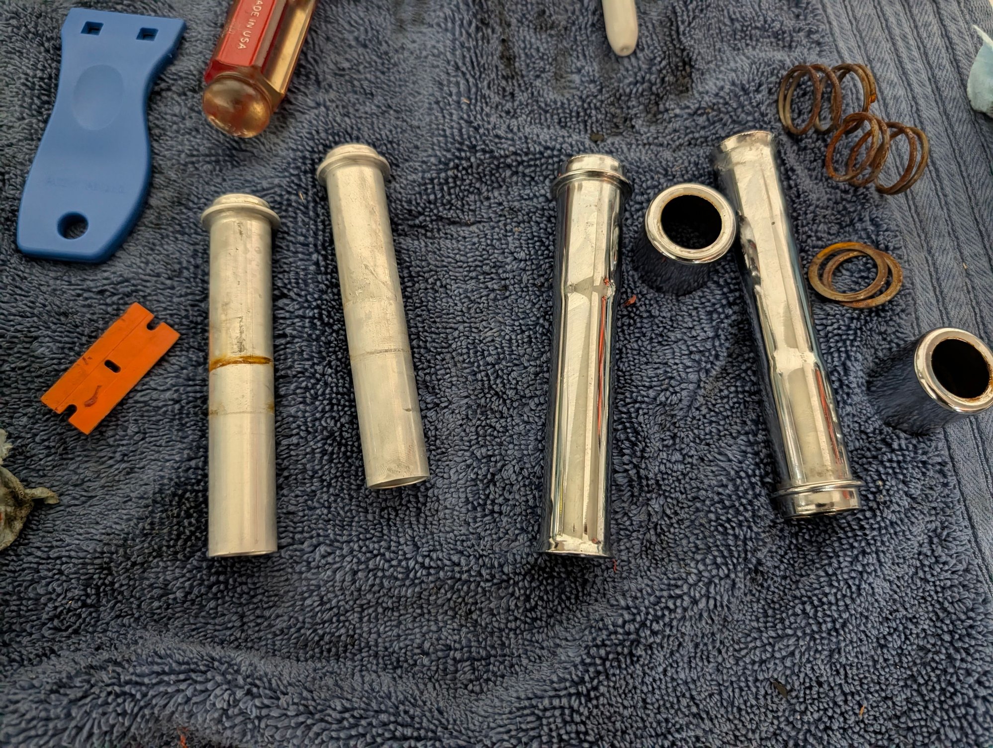 Cleaned up the pushrod covers, ran them through the ultrasonic cleaner with some simple green and hit them with the 0000 wool.