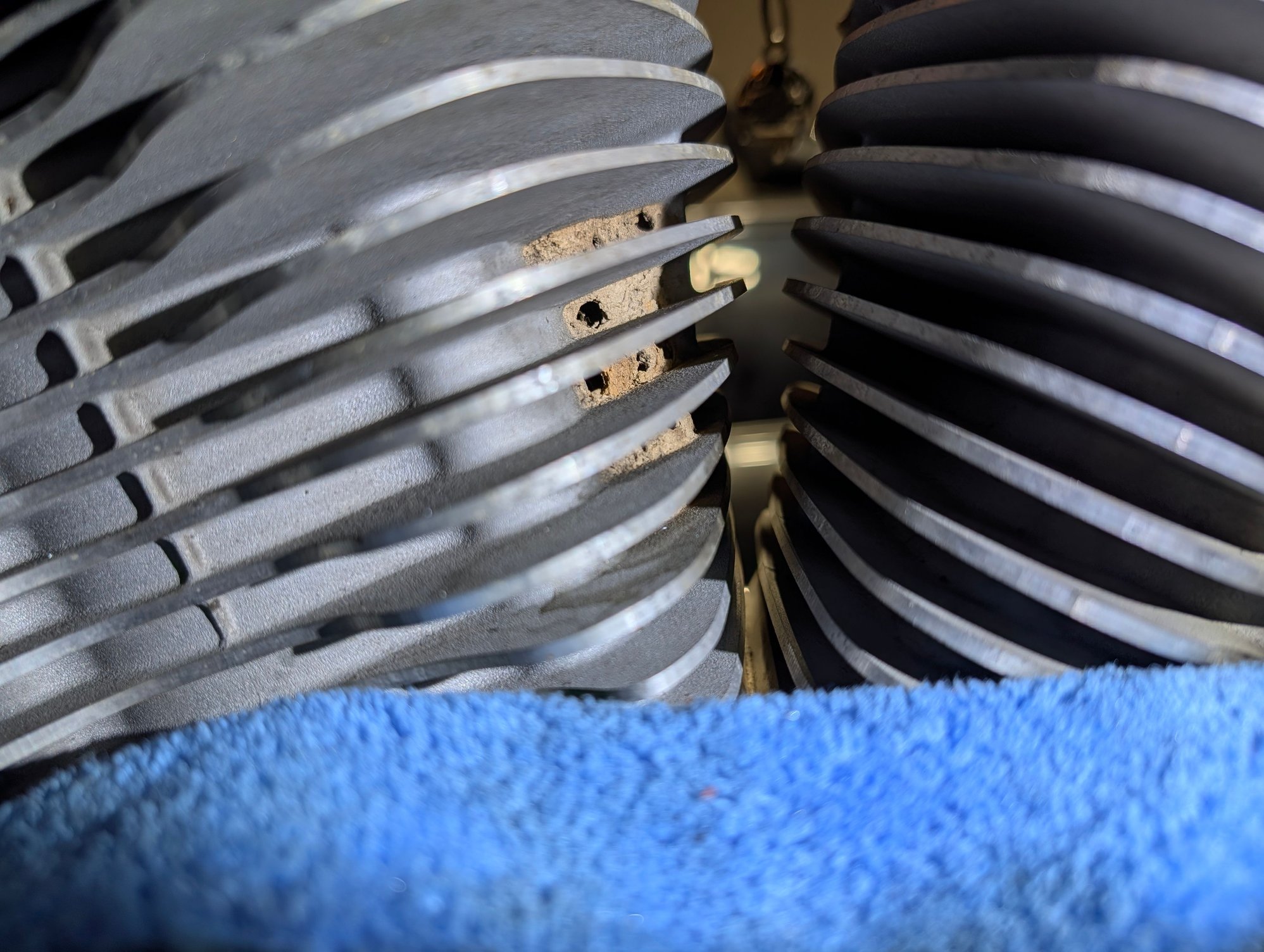 I guess i never got down low enough to see the bottom fins of the jugs. Since getting a lift and having the bike up higher i was able to see this mess. It also shows me i dont wash the bike well enough since theyve made it through many washes.