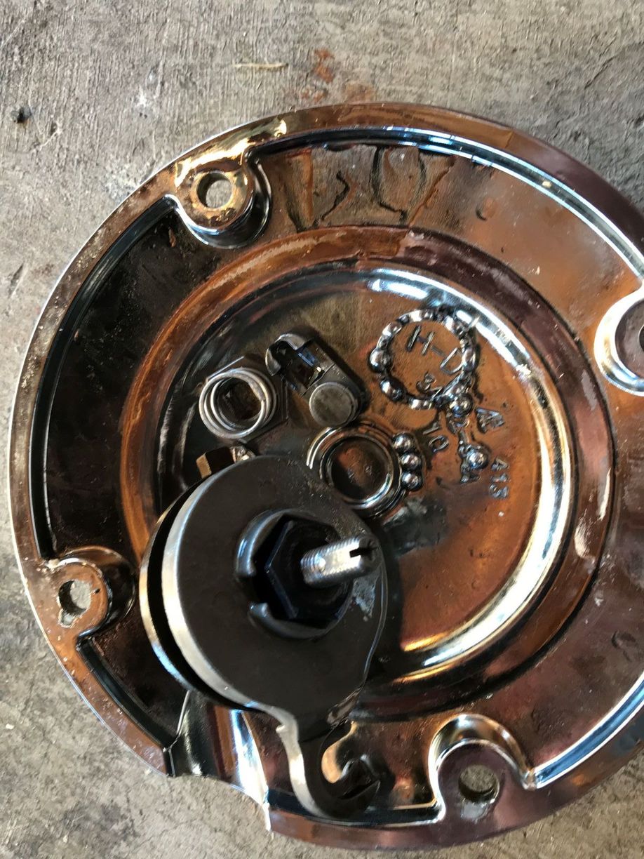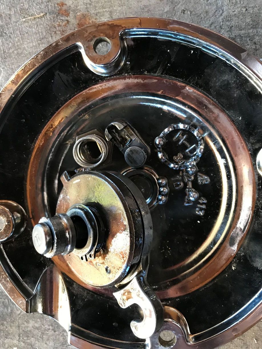 Thomas basically, after the fall out.. I'm left with a hole. Picture of Mechanism parts that fell out upon removal of my Darby cover. Notice the chewed up (Bearing houseing ?) at the end of the adjuster key. I'm Left with a screen and BB's which I'm guessing is the interior of the bearing the exploded? might be a clearer image