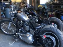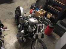Taking shape. Im thinking flat marroon paint on tank and fender