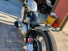 Street bob tubes in front, 14.25 rear. Rides great, much better turn in. Also looks the buisness in my book