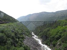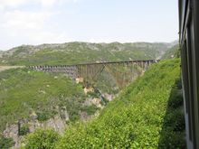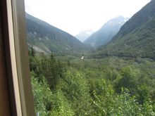 You can see the train tracks cut into the mountain.