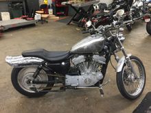 This bike was in for a stage 2 boom audio upgrade, handlebars and a wireless Bluetooth headset module install called whim. I work out of a 40” snap on bottom box and I have had the craftsman top box for quite a while and decided I would use that until it bites the dust before I fork over $1800+ for the matching top box. I also have a little service cart that hold my tools so I don’t have stuff all over my lifts when I’m working on bikes. It’s a us general cart from harbor freight. Does the job.