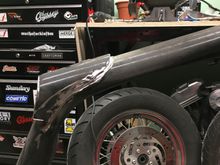 Got my rear fender from Lowbrow customs (made by Ledsled). It’s sized for stock size tires which I decided to stick with.