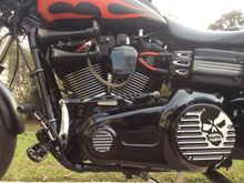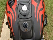 DSC01712 REV Paint Set from Harley #52 of 200,black gas caps from Harley with LED fuel level , had the console powder coated Gloss black, you can see the Jagg 10 row oil cooler, it dropped the temps. 20 degrees .