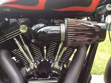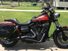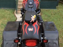 DSC01713 Harley FaBob sissy bar, Asshole mirrors from J&P CYCLES. Fuse Box Trim,I ordered 2 battery box trim pieces off of a 2010 CVO FatBob put 1 on battery box and trimmed and rebent the other one to fit the fuse box cover it was a pain in the ass but i got it to fit and it looks nice even up close.