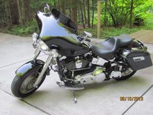 2001 Fat Boy, A.N. big sucker, Andrews cams, S.E. tensioner/pump upgrade, Rinehart Churchill 2-2, Memphis Shades fairing, HD hard bags.