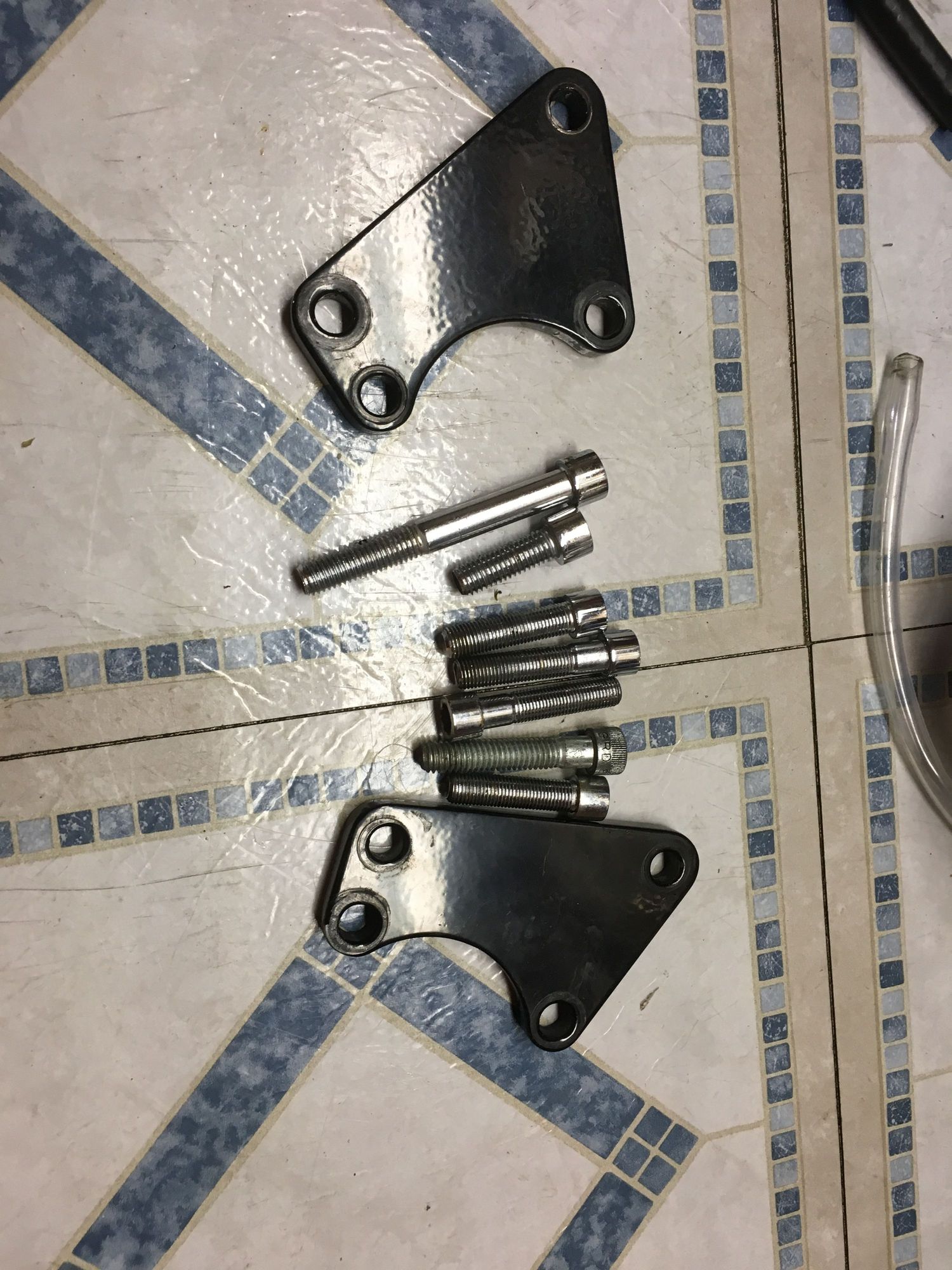 Here is what I am sending out today. I remembered these being chrome...... I have no idea what the heck the long bolt is for, but it was in the box that I had these stored in. I hope the black is OK fir you