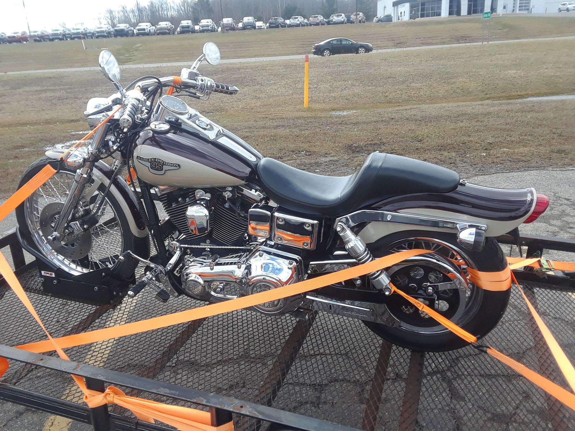 Oddly webbed onto the trailer coming home.