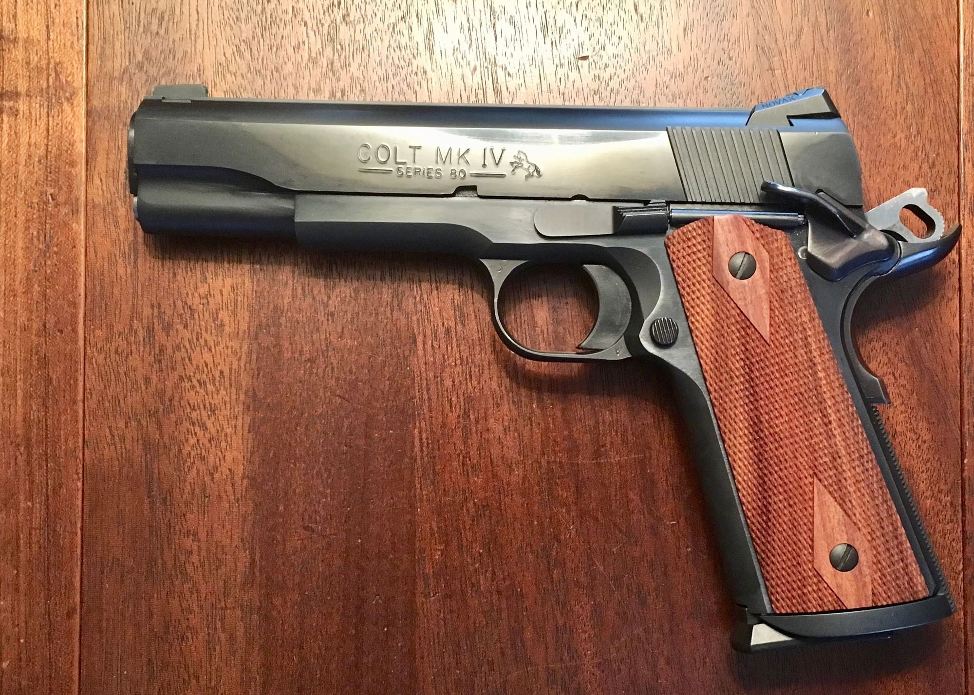 My dad’s Colt. I cut the frame tangs and fit a Wilson grip safety. Had Novaks cut the slide for their sights, and gave it to my son for graduation last year.
