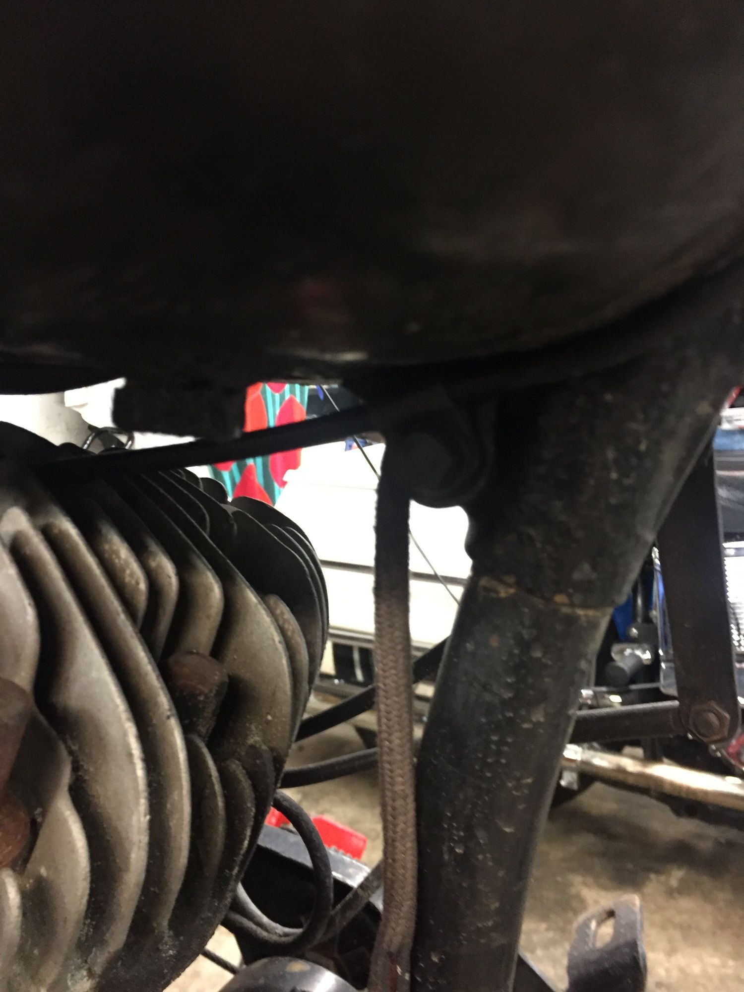 See the little bracket, you need that to hold the throttle cable housing to allow the inside cable move. It is held on by the tank bolt.