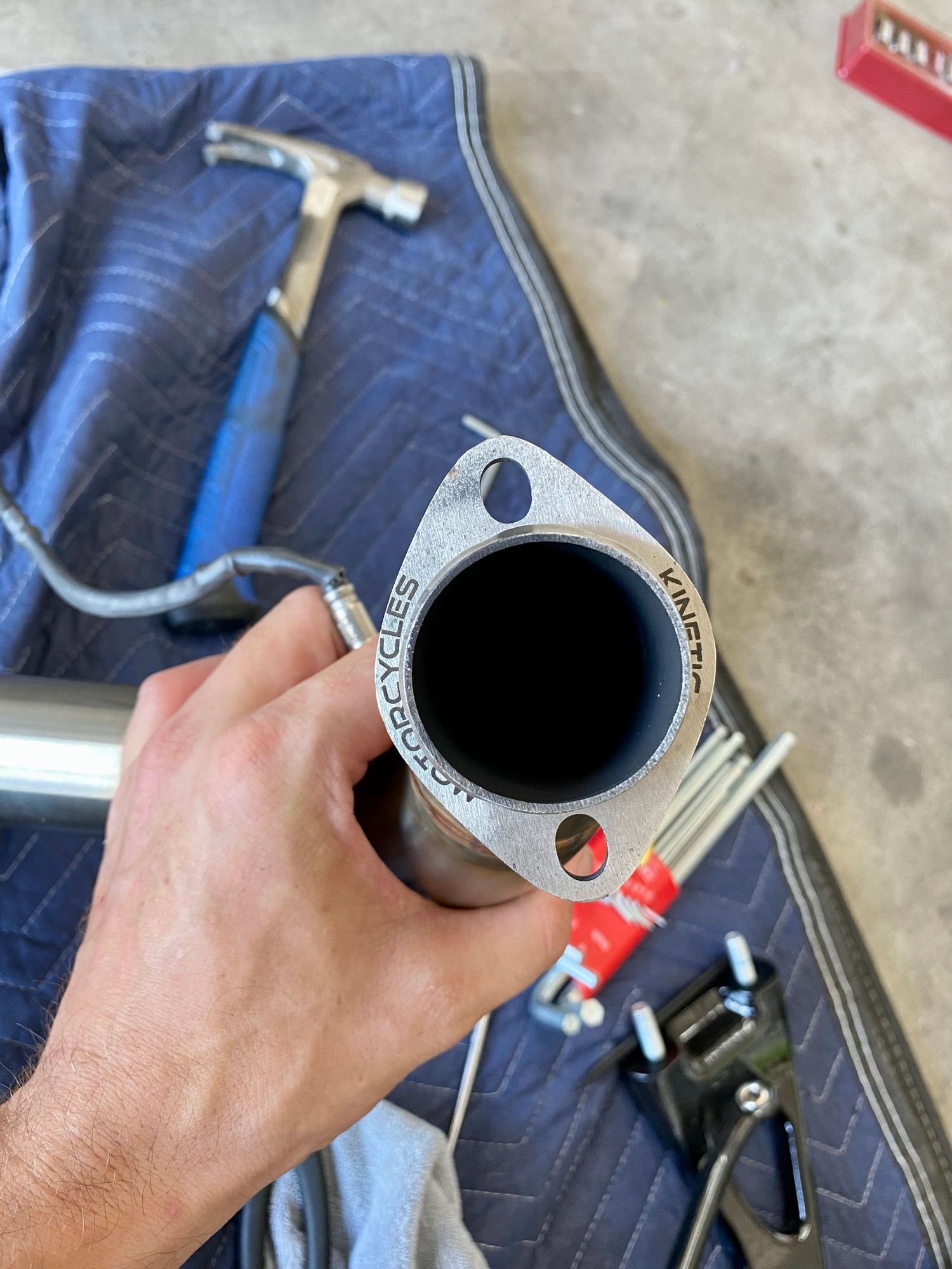 Incorrect logo orientation on front pipe (logo facing cylinder head)