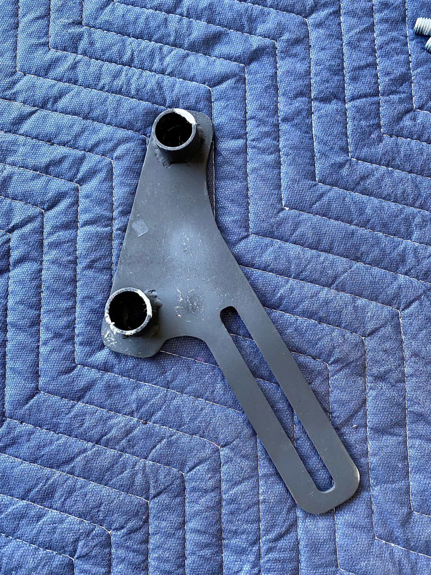 Bracket was painted flat black (still reeks of aerosol spray paint) then while the paint was wet it was wrapped in tissue paper and thrown in the bottom of the box for shipping.