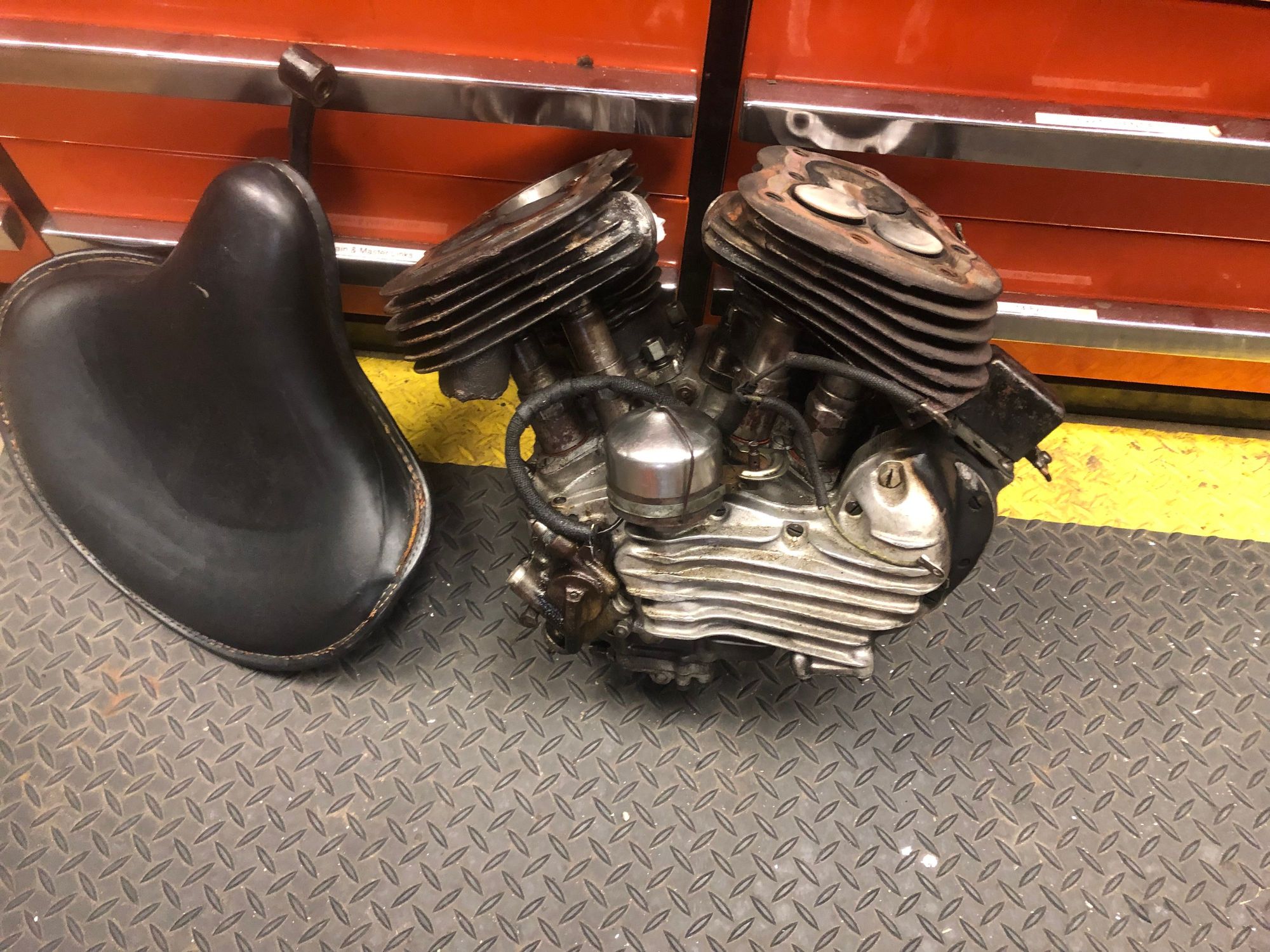 My motor sitting on the floor after being ripped from the frame.