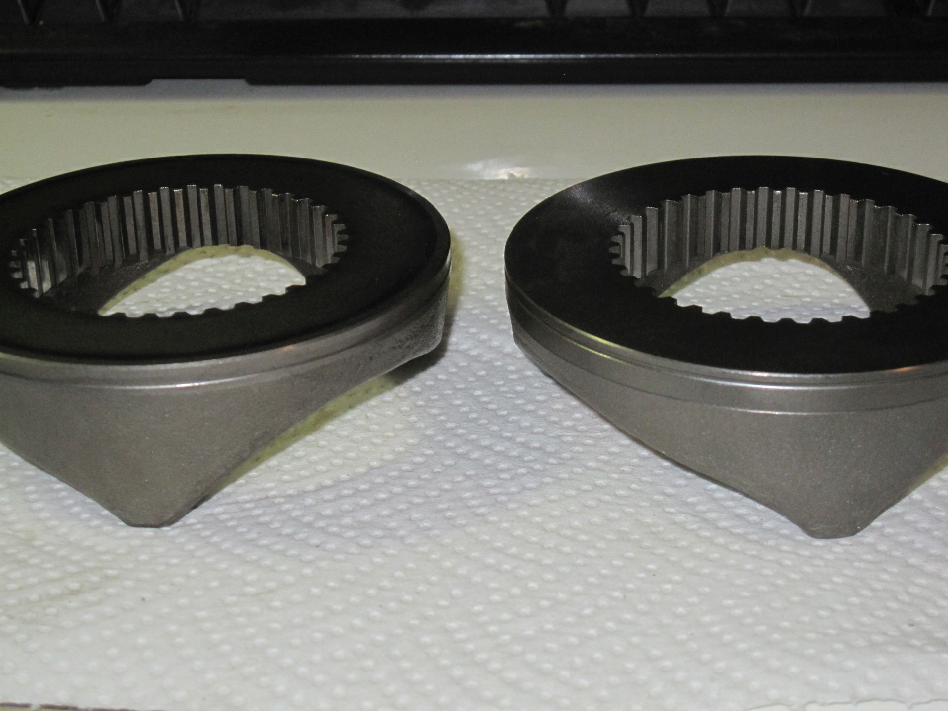 Sliding cam on the right has the groove. Sliding cam on the left, does not have the groove.