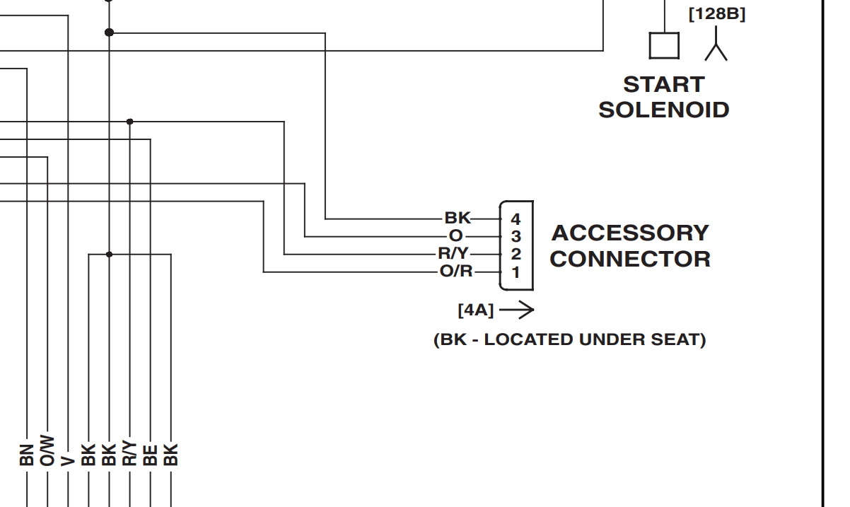 the orange is not from instruments but from the accessory switch, so it's switched power. R/Y brace, O/R P&A
