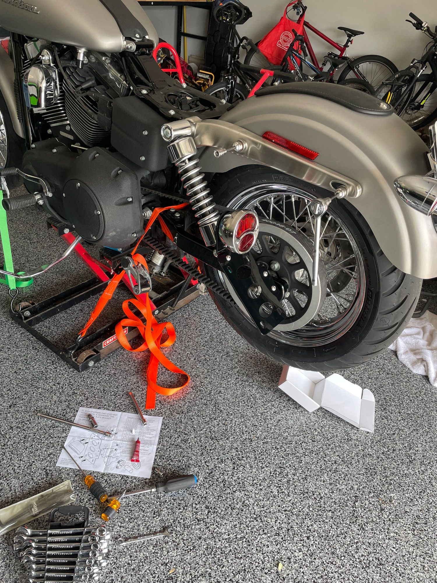 I disconnected the battery and lifted the bike up and installed the bracket on the axle.