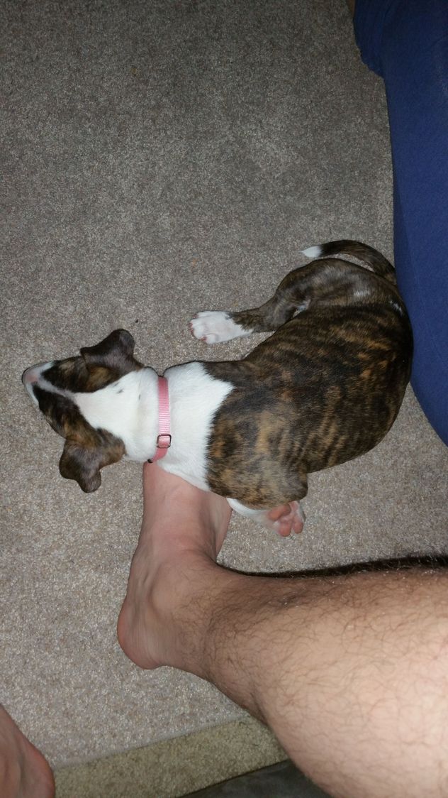 She likes to be touching me all the time. I retreat to the couch and she lays on my feet. I feel loved.
