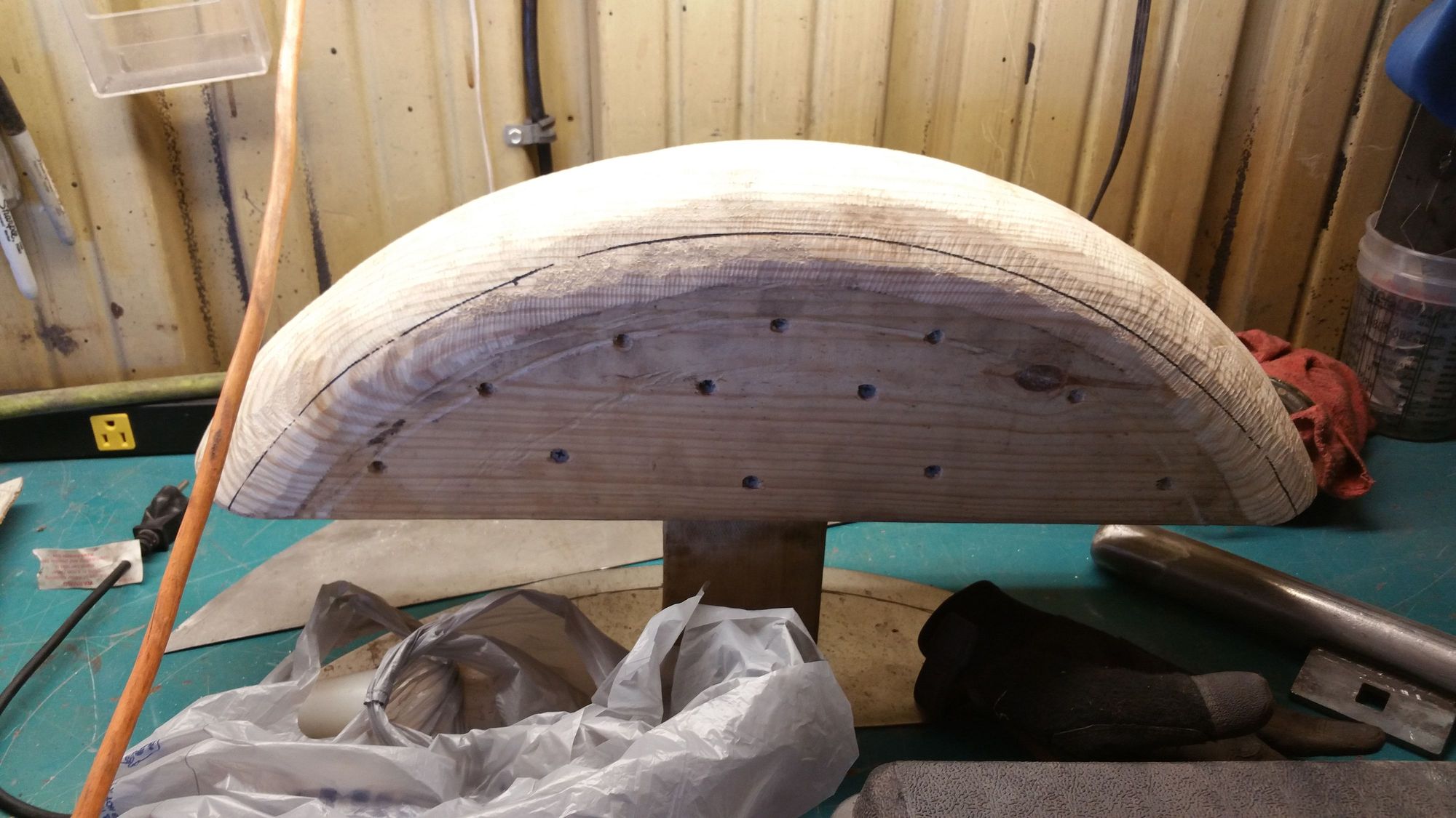 This a wooden form that is an exact replica of the tire. The metal can be formed to this and not risk damaging my tire.