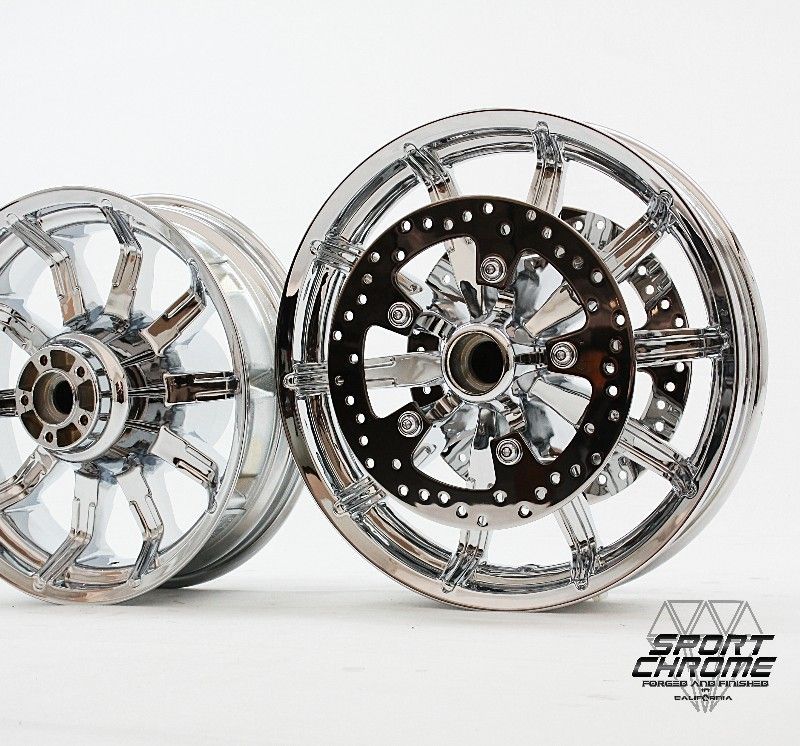 Chrome Impeller wheels with mirror-polished front discs and chrome plated front disc hardware from Sport Chrome.