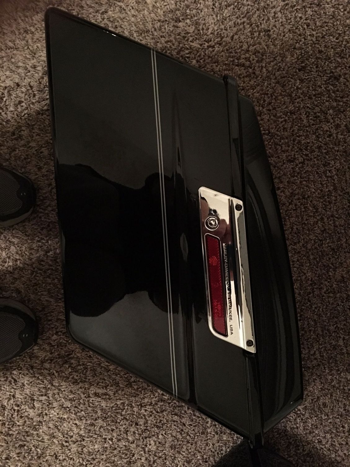 Complete Sets Vivid Black w/Gray Pinstripe Saddlebags 98-2013More About This Picture