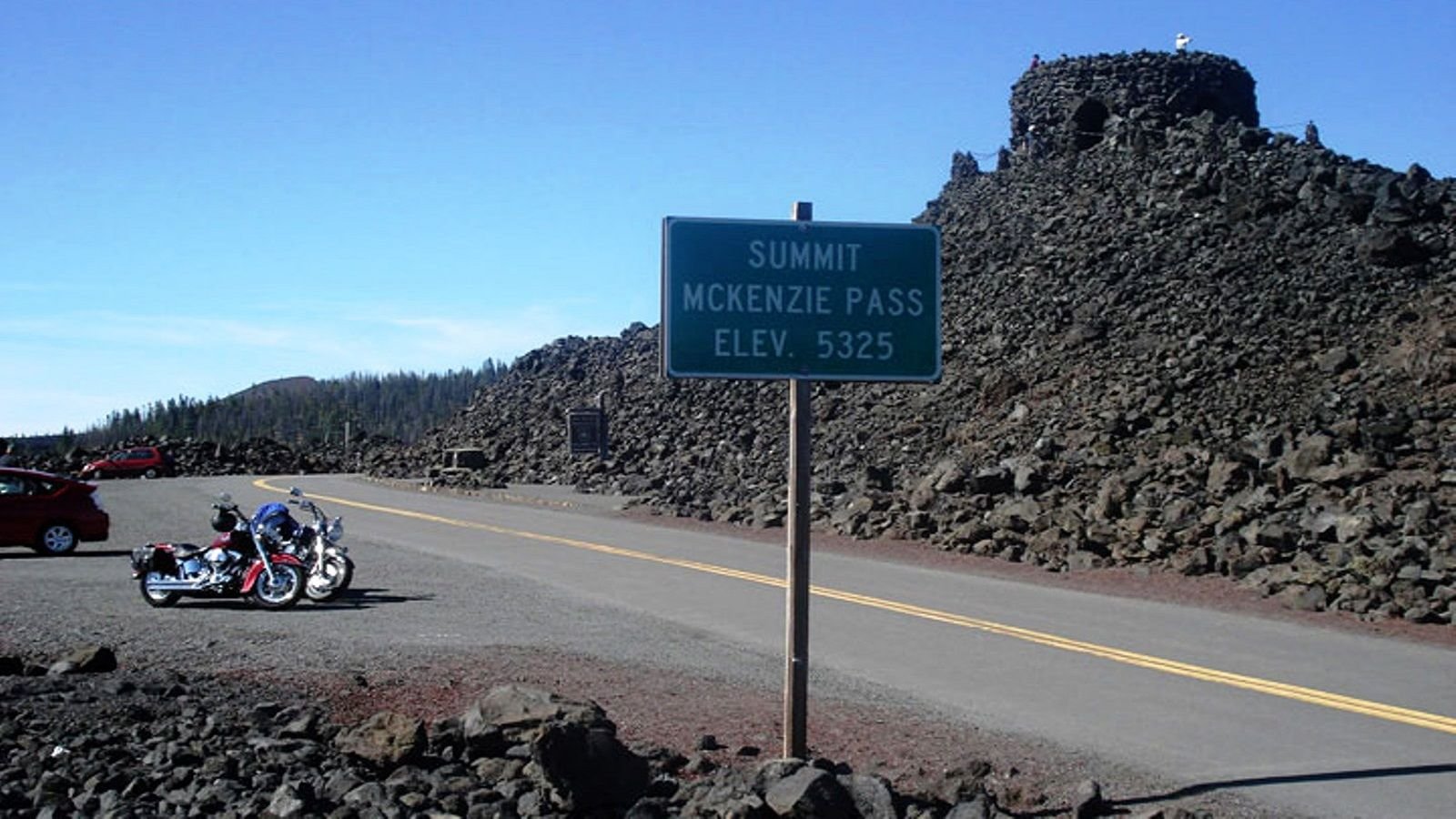 Oregon has a large and active riding community, much of it centered around the city of Portland, and some great mountain and forest roads to ride. If you are in Eugene, this route takes you through the Willamette National Forest, over Santium Pass, through the tight and twisty McKenzie Pass, and around Mount Washington. Mt. Washington is actually a misnomer, as this nearly 8,000 ft peak is actually an ancient volcano, and the pass goes though an otherworldly 65 square mile ancient lava flow. During the depression, an observation platform was constructed out of the lava, as seen in the picture, known as the Dee Wright Observatory. From Eugene, head east on state road 126 until you get to the junction of 126 and 242, turn right on Rt-242 and enjoy the tightest section of the whole ride, which lasts about 35 miles, until you reach Sisters, OR. Go left at the junction of 242 and US-20, heading west again and you'll pass Black Butte, and Three Fingered Jack on your right, while Mt. Washington is on your left the whole time. Watch for the fork, and bear left onto Rt-126, which you will follow all the way back to Eugene. The loop around Mt. Washington is called the McKenzie–Santiam Pass Scenic Byway. The map is here.