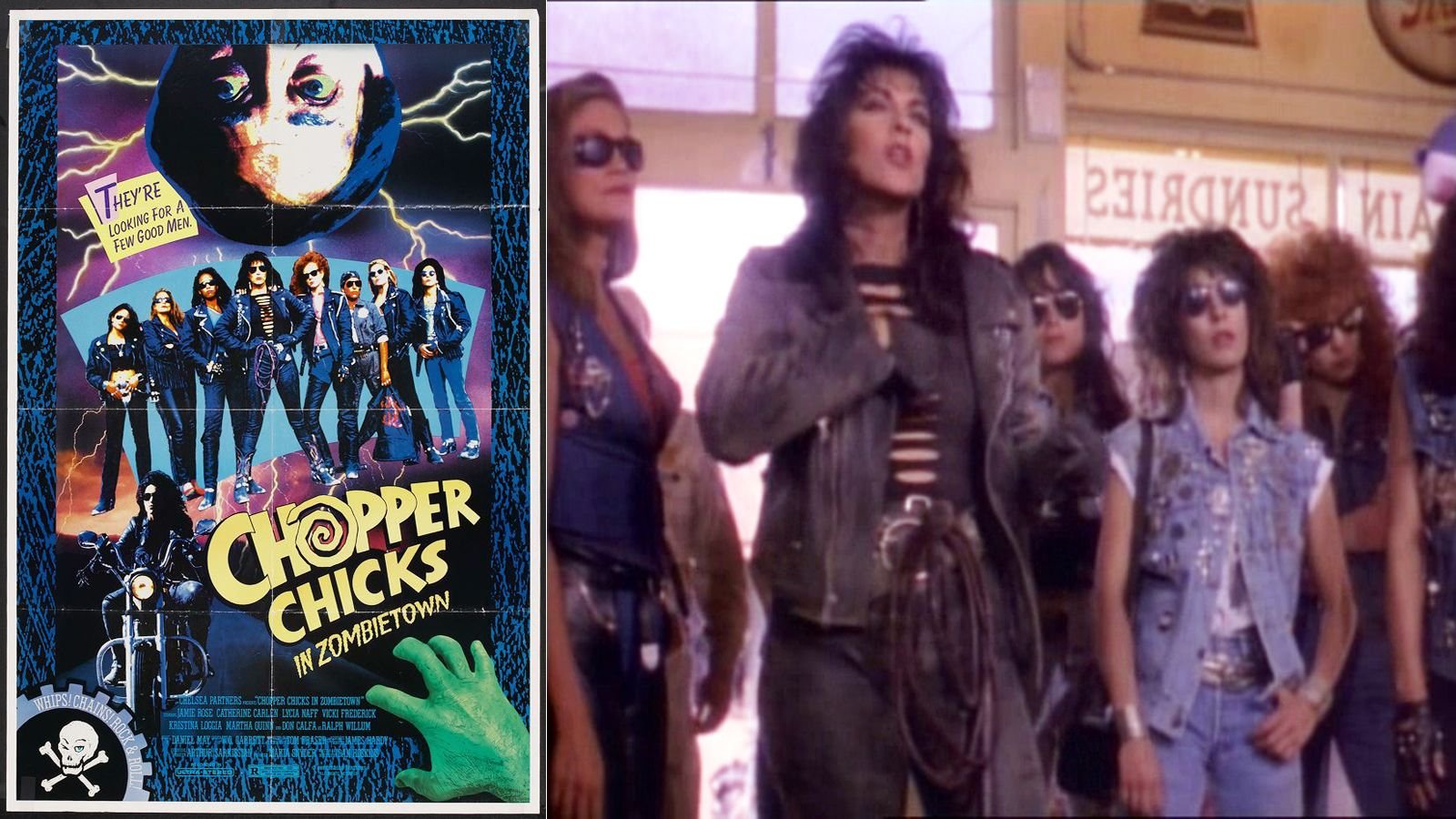 This movie is exactly what the title says. An all female biker gang, called the Cycle Sluts, end up in a little town where a mad scientist has been creating zombies, in order to use in a mine to radioactive for humans. It is a horror comedy, so it knows how ridiculous that premise is. Billy Bob Thornton is in this in one of his first paid acting jobs. You can see the trailer here, or watch the whole movie on YouTube here.