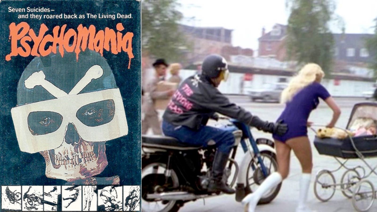 Still another British biker/horror movie, Psychomania (sometime known as The Death Wheelers in the US) deals with a gang of bikers (The Living Dead) who rape and pillage, and somehow discover the secret to dying and coming back as the undead. It really is not well explained, but it has something to do with being super badass, and killing yourself dramatically while not caring if you live or die. Once they are the undead, they pretty much just keep doing what they had been doing, terrorize the town folk, riding their bikes, raping, murdering and stealing, but with no fear of death. You can watch the trailer here, or this entire film on YouTube here.