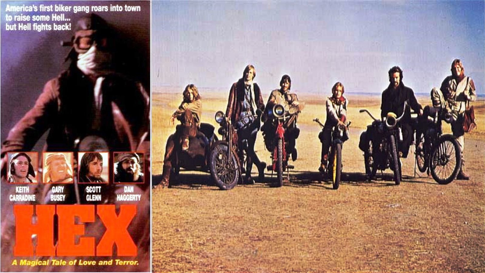 This is a more traditional biker movie, except it takes place in the old west and they are all WWI veterans. Hex, also sometimes called The Shrieking, Charms, or Grass Land, follows the gangs exploits as they run afoul of some town folks, hide out at a farm with some native American girls, and then get cursed when one of them gets fresh with the ladies. From that point on they all end up dying in strange and horrible ways, while trying to outrun the hex. The trailer is not online, but the whole movie is, here.