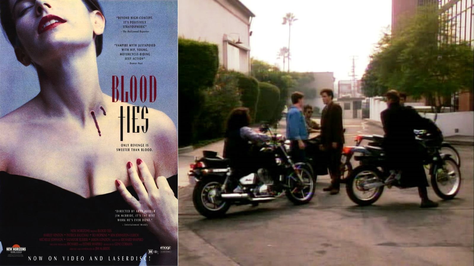 There have been quite a few movies with the titles Blood Ties over the years, but this one is the only one that dealt with a feud between a group of biker vampires and a family of cops who are vampire hunters. It is played straight, and it is an action, horror, biker film that isn't half bad. You can see the trailer here, or the whole thing on YouTube here.