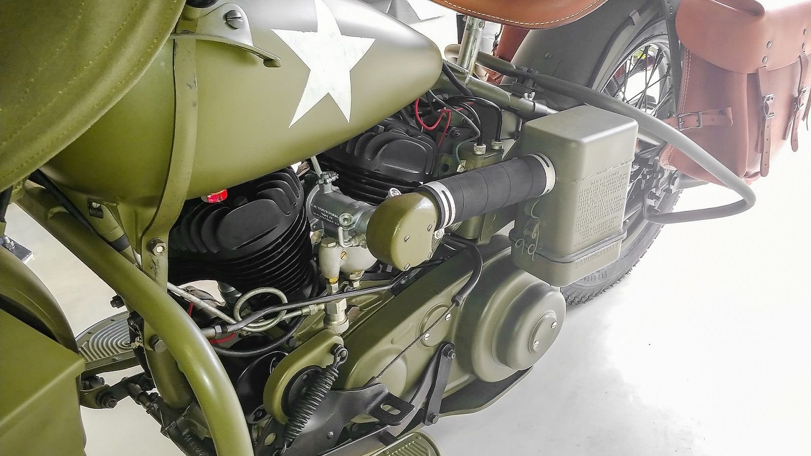 There are a lot of additional add-ons that only add to the military appeal, too. Like those custom leather saddlebags that feature a correct pebble grain texture.