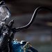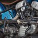 Yet another swap meet find changed Helverson's build direction. Already a rolling archive of Harley-Davidson history and cool aftermarket parts, a set of spindly Invader wheels proved to be a perfect complement for the skinny VL frame. The level stance is achieved by a twenty-one wheel up front, and a sixteen-inch version in the rear. Both wheels are wrapped in Coker rubber for a timeless look.