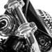 They also re-routed the wiring harness for a nice, clean look and installed a custom seat from Custom Chrome Europe. The rear passenger pillion was built by Japan's Easyriders and the hand controls are from Beringer. The handlebar risers and the brake and shifter pegs were all provided by Rough Crafts and, on the low side, there's a Biltwell clutch cover. The bike's voice is provided by a sleek, simple exhaust from Parts Europe.