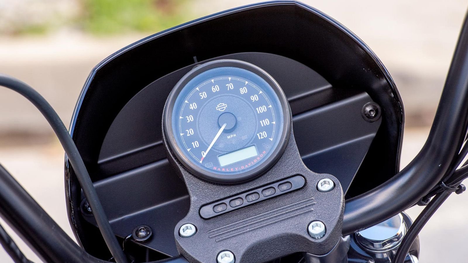 While the Iron 1200 is a no-frills bike, add-on options are available. Adding the Harley-Davidson Smart Security System will cost an additional $395, while anti-lock brakes push the price up by $795. Offering just a touch of wind deflection, a stock gloss black bikini fairing pairs nicely with the mini-ape handlebars. With a modest rise, the setup makes for a cool fist-in-the-wind riding stance.