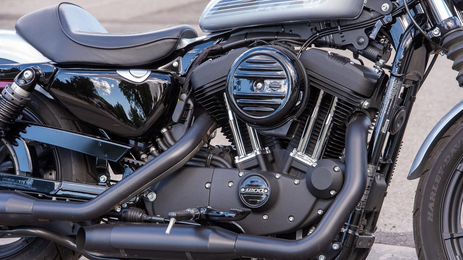 The Iron 1200 is a simple, bare-knuckle style motorcycle with a legendary powerplant. Backed by staggered exhaust with slash-cut mufflers is the tried-and-true Evolution engine. The air-cooled, push rod motor has been a staple since 1986. First introduced in 883cc and 1,110 displacements, the 1200cc format followed in 1988. The motor's overall design legacy dates back to the 1957 Ironhead.