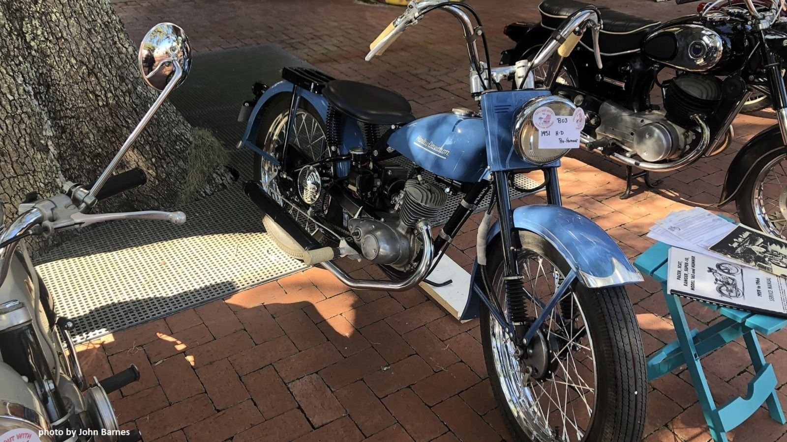 Another cool part about attending a vintage show like this one is that you get to see bikes that you normally don't get to see. Bikes like this 1951 Harley-Davidson Hummer. A faithful restoration, this bike serves as a reminder to all those folks out there complaining about the new machines that Harley-Davidson is putting out. Bikes like the Livewire, the Pan America, the Bronx, all of the e-bikes and of course, the Streets (which are not really my cup of tea). While many of us prefer the heavy, loud, chrome-laden machines, we have to remember that Harley-Davidson has colored outside the lines several times throughout their history.